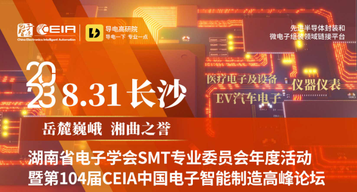 2023年8月31日湖南長沙,CEIA第104屆中國電子智能制造高峰論壇,將在長沙梅溪湖金茂豪華精選酒店 三樓金茂廳舉行。